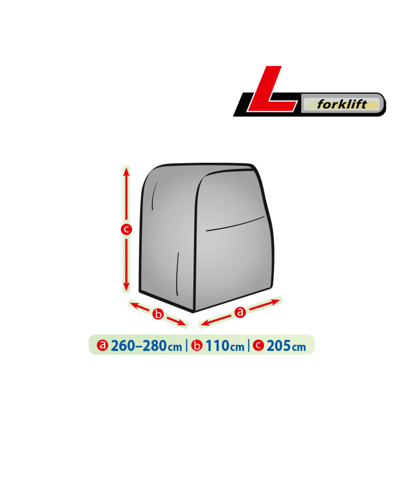 Wasserdichte Abdeckung zum Schutz eines im Freien gelagerten Gabelstaplers vor widrigen Umwelteinflüssen. Auch für die Verwendung in Innenräumen geeignet. Sie schützt vor Regen, Schnee, Frost und Sonnenlicht (schädlicher UV-Strahlung) sowie Verunreinigungen wie Staub, Vogelkot und Baumsäfte. Die wasserdichte und atmungsaktive Membranabdeckung leitet die Feuchtigkeit unter der Abdeckung nach außen. Sie ist wetterbeständig. Vor der Abdeckungsnutzung sollte man sich mit der Anleitung im Inneren der Abdeckungstasche vertraut machen.
