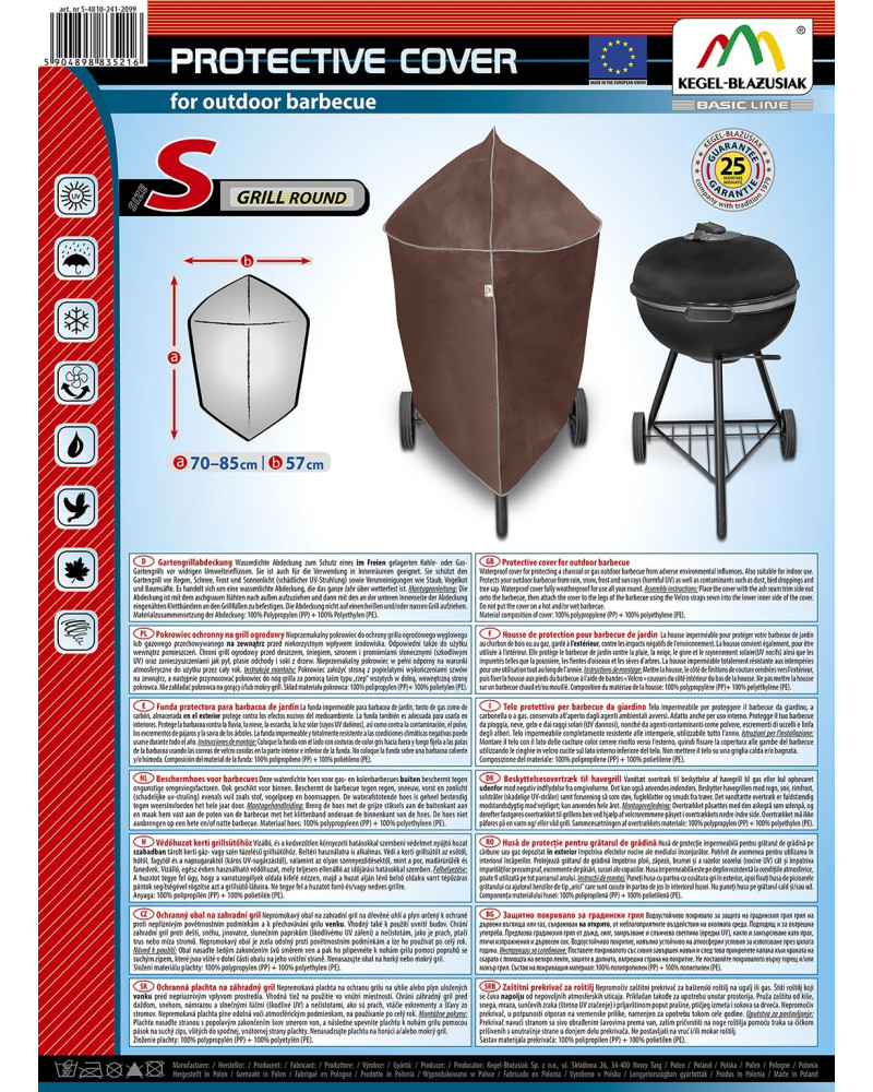 Wasserdichte Abdeckung zum Schutz eines im Freien gelagerten Kohle- oder Gas-Gartengrills vor widrigen Umwelteinflüssen. Sie ist auch für die Verwendung in Innenräumen geeignet. Sie schützt den Gartengrill vor Regen, Schnee, Frost und Sonnenlicht (schädlicher UV-Strahlung) sowie Verunreinigungen wie Staub, Vogelkot und Baumsäfte. Es handelt sich um eine wasserdichte Abdeckung, die das ganze Jahr über wetterfest ist.