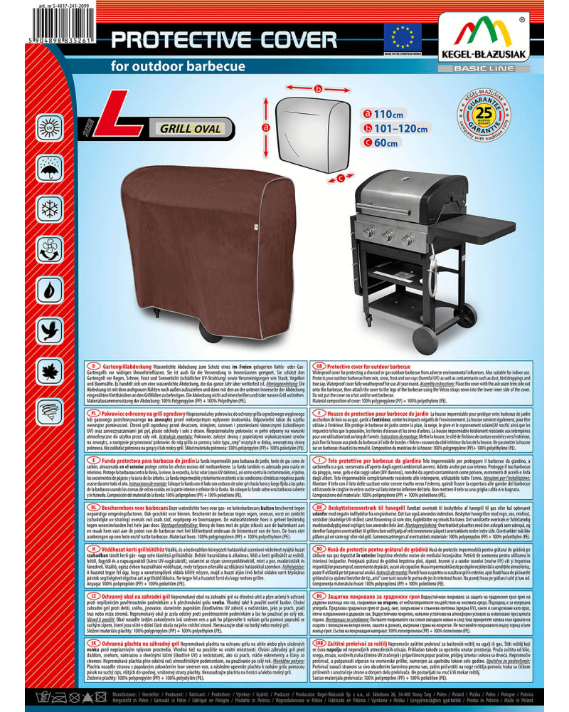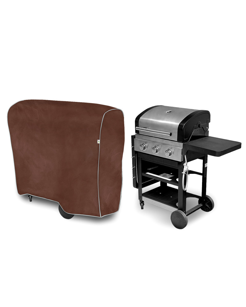 Wasserdichte Abdeckung zum Schutz eines im Freien gelagerten Kohle- oder Gas-Gartengrills vor widrigen Umwelteinflüssen. Sie ist auch für die Verwendung in Innenräumen geeignet. Sie schützt den Gartengrill vor Regen, Schnee, Frost und Sonnenlicht (schädlicher UV-Strahlung) sowie Verunreinigungen wie Staub, Vogelkot und Baumsäfte. Es handelt sich um eine wasserdichte Abdeckung, die das ganze Jahr über wetterfest ist.