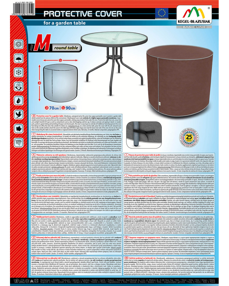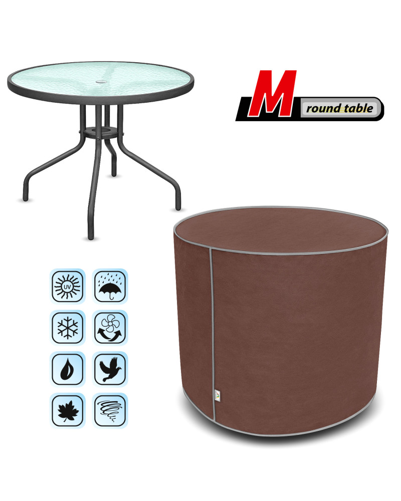 Ganzjahresabdeckung zum Schutz eines im Freien gelagerten Gartentisches vor widrigen Umwelteinflüssen. Dank ihrer speziellen Konstruktion läuft das Wasser bei Regen von der Abdeckung ab, ohne unter die Abdeckung zu dringen. Sie schützt den Tisch vor Regen, Schnee, Frost und Sonnenlicht (schädlicher UV-Strahlung) sowie Verunreinigungen wie Staub, Vogelkot und Baumsäfte. Sie verringert die Korrosion und Alterung von Kunststoff- und Holzteilen und schützt vor Ausbleichen und Anlaufen von Lacken und Chromteilen. Die Abdeckung hält allen Witterungsbedingungen stand. Leicht an- und auszuziehen. Die zusätzlichen Verschlüsse schützen die Abdeckung vor dem Abreißen durch den Wind. Sie ist auch für die Verwendung in Innenräumen geeignet.