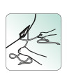 Die Hülle ist mit den aschgrauen Nähten nach außen über das Gestell und den Sessel zu stülpen. Dabei ist die Hülle so zu drehen, dass sich die Tasche an der Unterseite der Hülle an der Vorderseite des Sessels befindet. Danach ist die Hülle an das Gestell mit, an der unteren Innenseite der Hülle angenähten, Klettverschlüssen zu befestigen. Die Kordelzugseile sind zu kreuzen und fest zusammenzuziehen und dabei die Kräfte parallel zur Sesselvorderseite zu lenken (siehe Abbildung Nr. 1). Die Kordelzugseile sind zuzubinden und es ist zu prüfen, ob sich der Knoten nach dem Ziehen des Kordelzugs nicht löst. Löst sich der Knoten, so ist der Vorgang zu wiederholen und die Bindemethode zu ändern. Der Knoten ist zusammen mit den Seilen in die Hüllentasche zu schieben.
