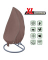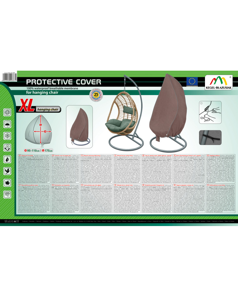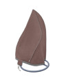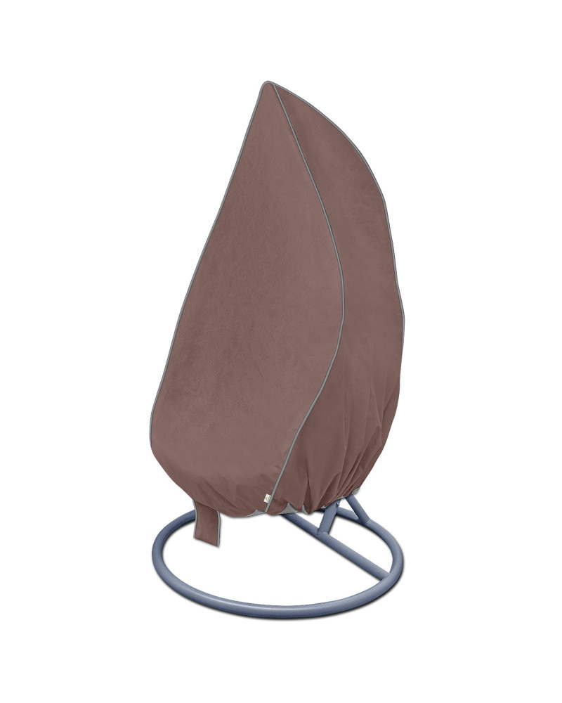 Wasserdichte und gleichzeitig dampfdurchlässige Membranhülle für einen im Freien abgestellten Hängesessel zum Schutz vor ungünstigen Witterungsbedingungen. Es handelt sich hierbei um eine wetterfeste Hülle, die vollständig aus einer hochgradig dampfdurchlässigen Membran hergestellt ist. Sie ist auch bei starkem Regen wasserdicht und zugleich dampfdurchlässig, so dass die Feuchtigkeit unter der Hülle abtransportiert wird. Sie schützt den Hängesessel samt Gestell vor Regen, Schnee, Frost und Sonnenlicht (schädlicher UV-Strahlung) sowie Verunreinigungen wie Staub, Vogelkot und Baumsäfte. Sie verringert die Korrosion und Alterung von Kunststoff- und Holzteilen und schützt vor Ausbleichen und Anlaufen von Lacken und Chromteilen. Sie lässt sich leicht auf- und abziehen. Die starke Kordelzugbefestigung mit Seil und die zusätzliche Befestigung am Gestell schützen die Hülle wirksam vor dem Abreißen durch den Wind. Die Schutzhülle ist auch für die Verwendung in Innenräumen geeignet.