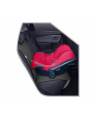 Kindersitzunterlage. Der Schoner schützt den Sitz unter dem Kindersitz vor Beschädigung und Verschmutzungen, die vom beförderten Kindersitz und dem beförderten Kind herrühren. Der Schoner ist aus einem Jacquardstoff gefertigt und basiert auf einem dicken Schaumstoff. Er lässt sich leicht aufziehen. Es reicht ihn unter den Kindersitz zu legen. Er kann auch auch für Kindersitze mit Isofix angwandt werden.