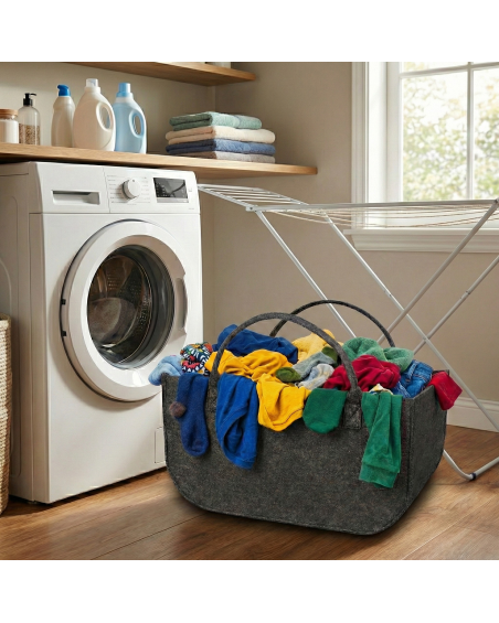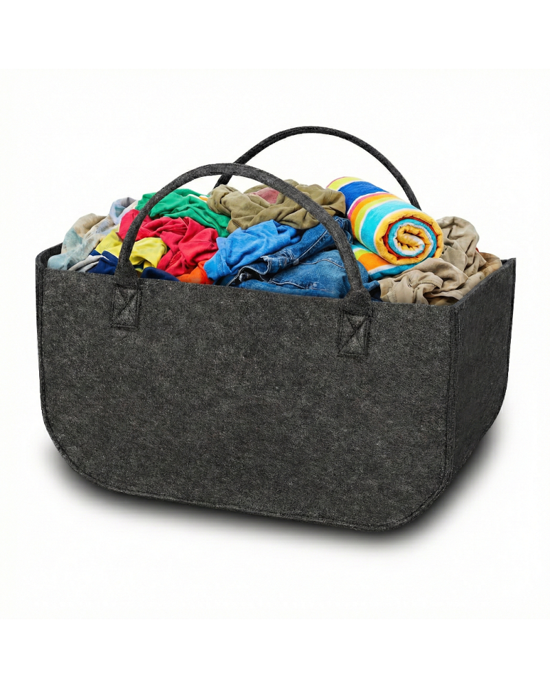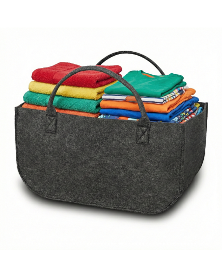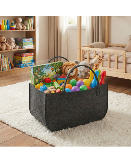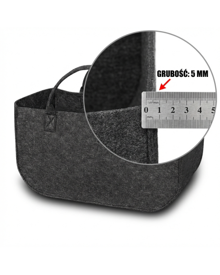 Große Tasche für vielfältige Verwendungszwecke, z. B. zur Aufbewahrung und zum Transport von Kaminholz, Kinderspielzeug, Spielzeug für Hunde und Katzen, schmutziger Wäsche und vielem mehr. Die Tasche eignet sich auch sehr gut zum Transport von Einkäufen im Auto und zum Tragen von Einkäufen vom Auto nach Hause. Die Tasche besteht aus sehr robustem, 5 mm dickem Filz, der mit sehr starken Kernfäden vernäht wurde, wodurch die Tasche sehr stabil ist und immer ihre Form behält. Die an der Tasche angenähten Griffe sind dick, stabil und bequem. In der Tasche können Gewichte von bis zu 30 kg transportiert werden.