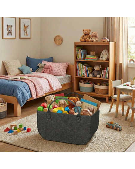 Es handelt sich um ein robustes, strapazierfähiges Material, das seine Form gut behält und sich im täglichen Gebrauch bewährt. Dank seiner neutralen, graphitfarbenen Farbe passt es in jedes Interieur – ins Wohnzimmer, Kinderzimmer oder Schlafzimmer.