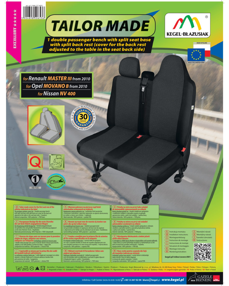 Die ARES-Bezüge sind sehr haltbar und praktisch, aber auch geschmackvoll und elegant. Das Produkt richtet sich an diejenigen, die den Innenraum ihres Fahrzeugs verschönern und die Polsterung vor Schmutz, Abrieb und Beschädigung schützen wollen. Die Bezüge können bedenkenlos bei 40° gewaschen werden, wie auf dem Etikett empfohlen.