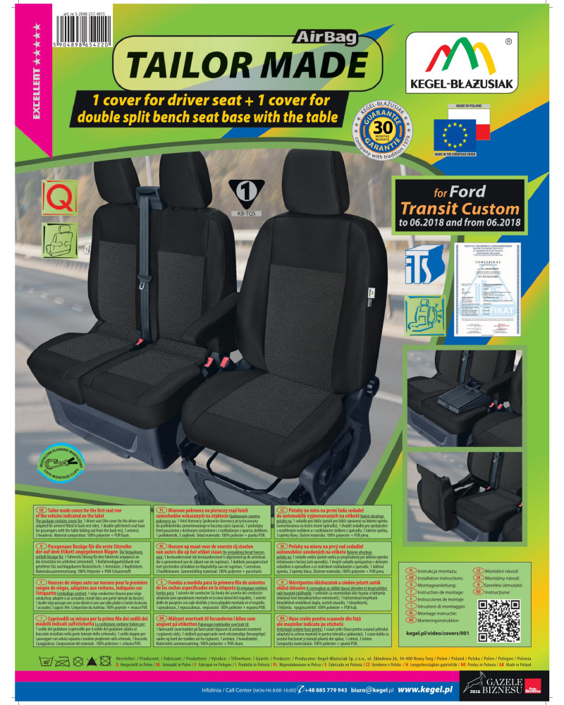 1 Bezug für Beifahrerdoppelsitzbank mit geteiltem Sitz und klappbarem Rücksitztisch