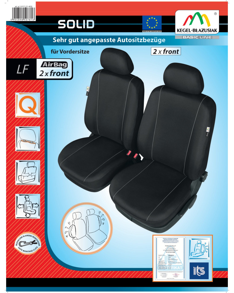 Die SOLID-Bezüge sind sehr haltbar und praktisch, aber auch geschmackvoll und elegant. Das Produkt richtet sich an diejenigen, die den Innenraum ihres Fahrzeugs verschönern und die Polsterung vor Schmutz, Abrieb und Beschädigung schützen wollen. Die Bezüge können bedenkenlos bei 40° gewaschen werden, wie auf dem Etikett empfohlen.