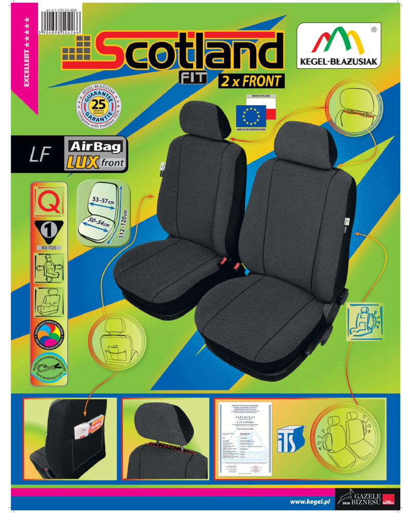 Gut angepasste Bezüge für die Vordersitze SCOTLAND