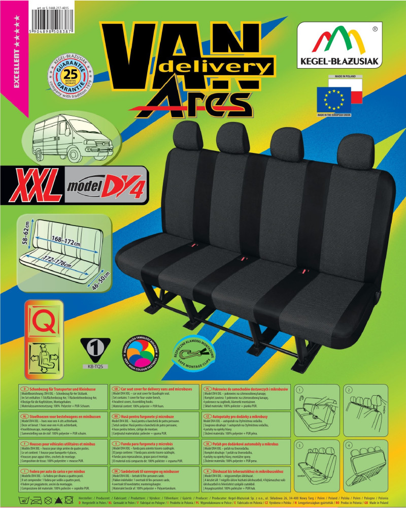 Die ARES-Bezüge sind sehr haltbar und praktisch, aber auch geschmackvoll und elegant. Das Produkt richtet sich an diejenigen, die den Innenraum ihres Fahrzeugs verschönern und die Polsterung vor Schmutz, Abrieb und Beschädigung schützen wollen. Die Bezüge können bedenkenlos bei 40° gewaschen werden, wie auf dem Etikett empfohlen.