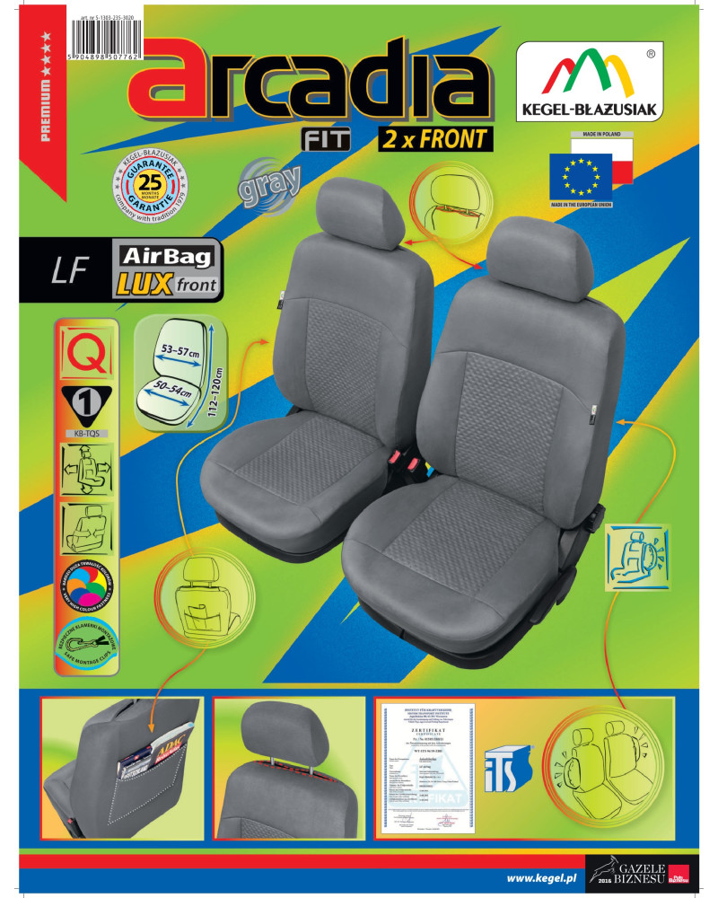 Die ARCADIA-Bezüge sind sehr haltbar und praktisch, aber auch geschmackvoll und elegant. Das Produkt richtet sich an diejenigen, die den Innenraum ihres Fahrzeugs verschönern und die Polsterung vor Schmutz, Abrieb und Beschädigung schützen wollen. Die Bezüge können bedenkenlos bei 40° gewaschen werden, wie auf dem Etikett empfohlen.