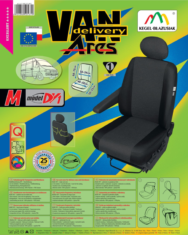 Die ARES-Bezüge sind sehr haltbar und praktisch, aber auch geschmackvoll und elegant. Das Produkt richtet sich an diejenigen, die den Innenraum ihres Fahrzeugs verschönern und die Polsterung vor Schmutz, Abrieb und Beschädigung schützen wollen. Die Bezüge können bedenkenlos bei 40° gewaschen werden, wie auf dem Etikett empfohlen.