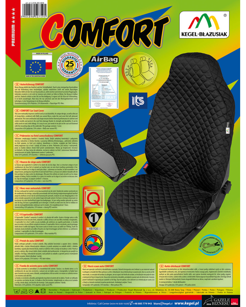 Dieser Bezug erhöht den Komfort und die Sitzhaltbarkeit. Durch seine einzigartige Konstruktion und die Verbindung eines beständigen, spürbar natürlichen Stoffs mit einem flauschigen Klimavlies fühlt sich der Sitz wie Baumwolle an, wirkt weicher und erinnert an einen Flugzeugsitz. Außerdem erwärmt er sich nicht im Sommer und schützt vor Kälte im Winter. Der Bezug ist haltbar und fest. Dadurch schützt er den Sitz vor Beschädigung. Er eignet sich für Sitze mit Seitenairbag. Er ist leicht anzubringen. Man muss ihn nur aufsetzen und mit den Montageklammern vorne befestigen. In der Verpackung ist ein Bezug enthalten.