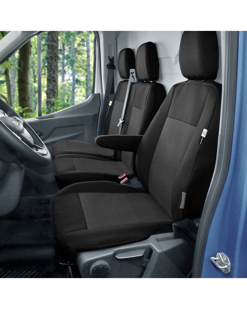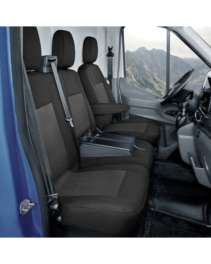1 Bezug für Beifahrerdoppelsitzbank mit geteiltem Sitz und klappbarem Rücksitztisch