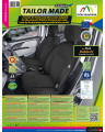 Die maßgeschneiderten TAILOR MADE-Bezüge werden aus hochwertigem Polstermaterial hergestellt, das in Verbindung mit der sorgfältigen Verarbeitung auch der kleinsten Details die anspruchsvollsten Kunden zufrieden stellt. Dank ihrer geeigneten, räumlichen Form und der spezifischen Anpassung an Ihr Fahrzeug passen sich die Bezüge perfekt an die Sitze an. Das Material haftet perfekt an den Sitzen und ersetzt deren eigentliche Polsterung. Die Materialinnenseite ist mit einem flammhemmenden PUR-Schaum laminiert, der ein Verrutschen verhindert.