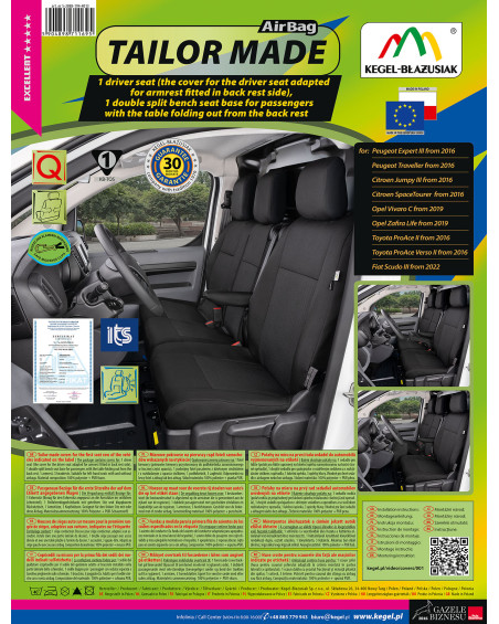 Die maßgeschneiderten TAILOR MADE-Bezüge werden aus hochwertigem Polstermaterial hergestellt, das in Verbindung mit der sorgfältigen Verarbeitung auch der kleinsten Details die anspruchsvollsten Kunden zufrieden stellt. Dank ihrer geeigneten, räumlichen Form und der spezifischen Anpassung an Ihr Fahrzeug passen sich die Bezüge perfekt an die Sitze an. Das Material haftet perfekt an den Sitzen und ersetzt deren eigentliche Polsterung. Die Materialinnenseite ist mit einem flammhemmenden PUR-Schaum laminiert, der ein Verrutschen verhindert.