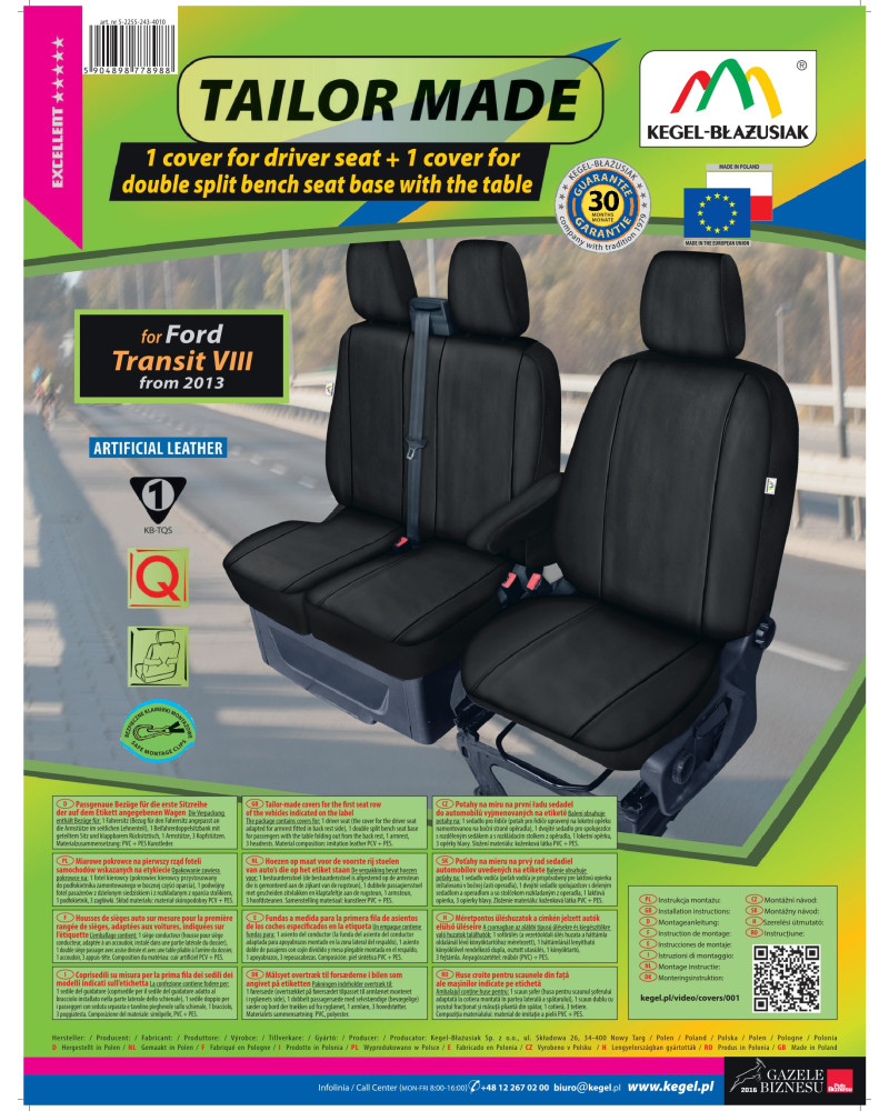 1 Bezug für Beifahrerdoppelsitzbank mit geteiltem Sitz und klappbarem Rücksitztisch