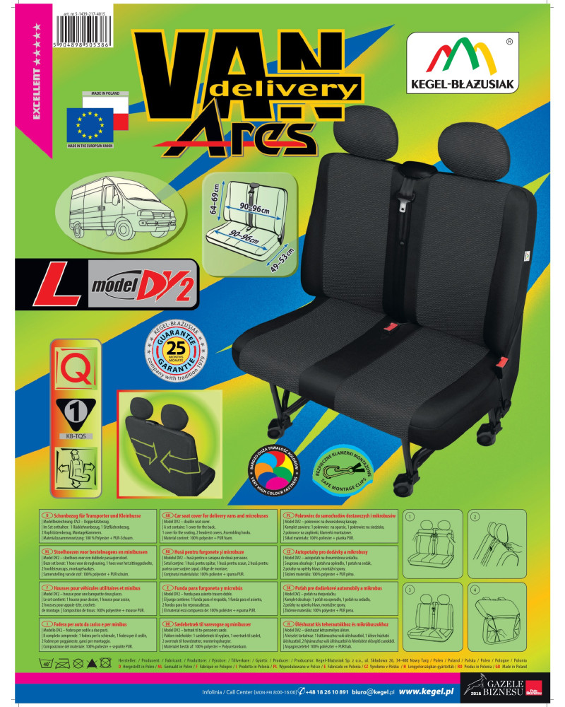 Die ARES-Bezüge sind sehr haltbar und praktisch, aber auch geschmackvoll und elegant. Das Produkt richtet sich an diejenigen, die den Innenraum ihres Fahrzeugs verschönern und die Polsterung vor Schmutz, Abrieb und Beschädigung schützen wollen. Die Bezüge können bedenkenlos bei 40° gewaschen werden, wie auf dem Etikett empfohlen.