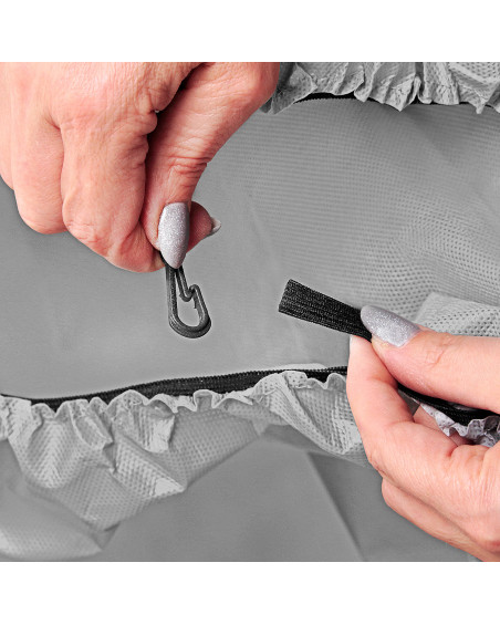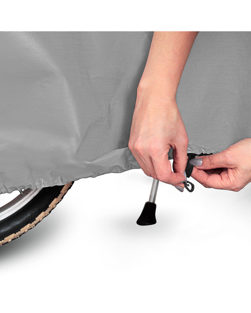 Die Fahrradabdeckung wird auf das Fahrrad auf die unten dargestellte Art und Weise aufgezogen.