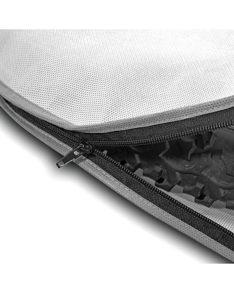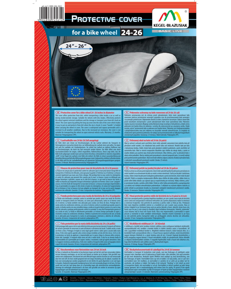 Die Hülle dient zum Schutz vor Verschmutzungen, die das Laufrad während des Transports im Fahrzeuginneren verursachen könnte bzw. zur Aufbewahrung des Laufrads innen und außen. Sie eignet sich auch für Laufräder mit Scheibenbremsen. Sie schützt das Laufrad vor äußeren Einflüssen und vor Verschmutzungen, die durch das Rad verursacht werden können. Die Hülle öffnet man durch Auseinanderschieben des langen, seitlich eingenähten, Reißverschlusses. Dieser sorgt dafür, dass die Hülle leicht aufgezogen werden kann und nach deren Verschluss schmutzdicht ist. Dank des eingenähten „Griffs“ ist das Tragen des Laufrads in der Hülle sehr einfach. Die Hülle ist schwer wasserdurchlässig und dampfdurchlässig und hält allen Witterungsbedingungen stand. Aufgrund des erhöhten Luftwiderstandes ist die Hülle nicht für die Laufradbeförderung auf exponierten Fahrzeugaußengepäckträgern geeignet. Garantie: 25 Monate.