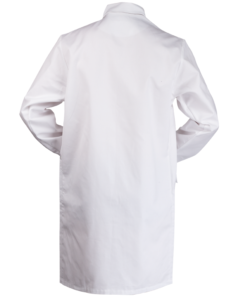 - Gerade geschnittene Schürze, mit Druckknöpfen bis zum Hals verschließbar;