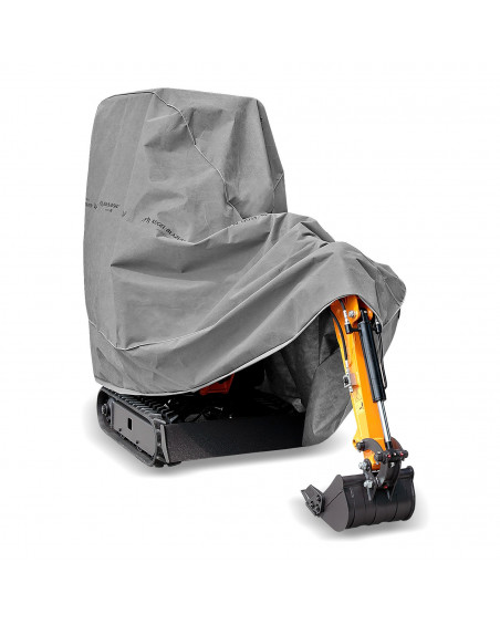 Wasserdichte Abdeckung zum Schutz eines Minibaggers vor widrigen Umwelteinflüssen. Sie eignet sich auch für Minibagger mit offener Kabine. Sie schützt vor Regen, Schnee, Frost und Sonnenlicht (schädlicher UV-Strahlung) sowie Verunreinigungen wie Staub, Vogelkot und Baumsäfte. Die wasserdichte und atmungsaktive Membranabdeckung leitet die Feuchtigkeit unter der Abdeckung nach außen. Sie ist wetterbeständig. Vor der Abdeckungsnutzung sollte man sich mit der Anleitung im Inneren der Abdeckungstasche vertraut machen.
