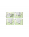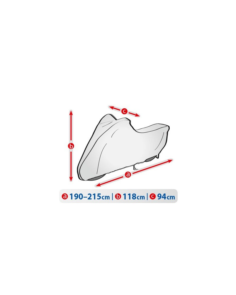 Die Abdeckung ist auf die abgebildete Weise (mit dem Aufdruck nach außen) auf ein sauberes Motorrad aufzuziehen, sobald das Auspuffrohr und andere Motorenelemente abgekühlt sind. Die Abzieherseile kreuzen und fest zusammenziehen und dabei die Kräfte parallel zum Motorradheck richten (siehe Abbildung Nr. 2). Die Abzieherseile zubinden und prüfen, ob sich der Knoten nach dem Ziehen des Abziehers nicht löst. Löst sich der Knoten, so ist der Vorgang zu wiederholen und die Bindemethode zu ändern.