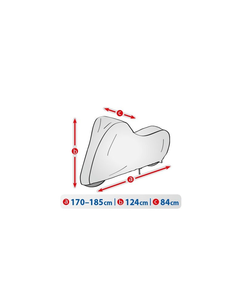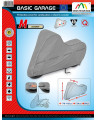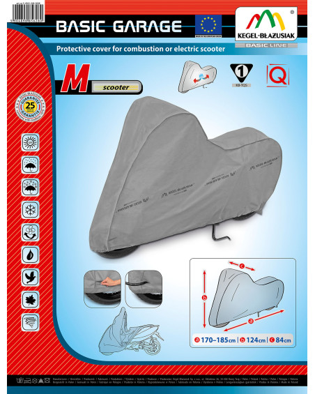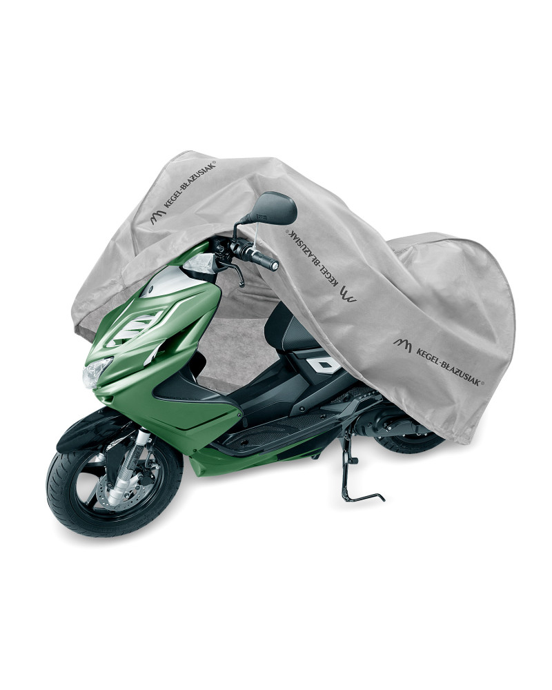 Wasserdichte, ganzjährige Schutzabdeckung für einen Roller. Es handelt sich hierbei um eine wetterfeste Abdeckung, die vollständig aus einer hochgradig dampfdurchlässigen Membran hergestellt ist. Sie ist auch bei starkem Regen wasserdicht und zugleich dampfdurchlässig, so dass die Feuchtigkeit unter der Abdeckung abtransportiert wird. Sie schützt vor Regen, Schnee, Frost und Sonnenlicht (schädlicher UV-Strahlung) sowie Verunreinigungen wie Staub, Vogelkot und Baumsäfte.