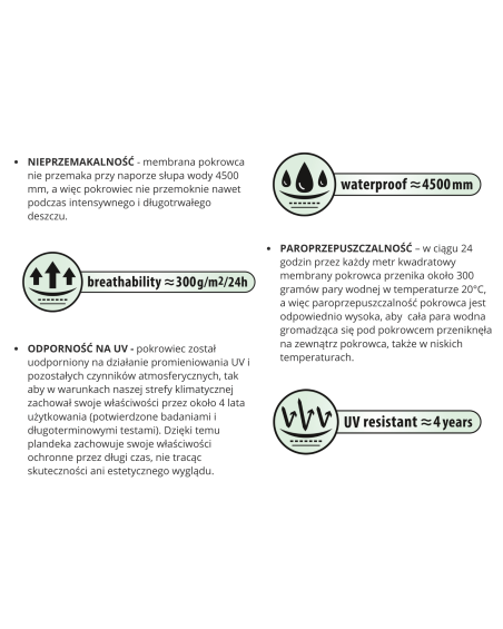 sie ist auch bei starkem Regen wasserdicht und zugleich dampfdurchlässig, so dass die Feuchtigkeit unter der Abdeckung abtransportiert wird