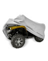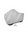 Wasserdichter Schonbezug für das Quad, der die Feuchtigkeit unter dem Schonbezug abführt. Er schützt das Quad ganzjährig vor schädlichen Umwelteinflussen. Er ist leicht aufzubringen und abzunehmen. Dank einer speziellen Struktur und Anfertigung aus wasserdichter dampfdurchlässiger Membran und schwer wasserdurchlässigem dampfdurchlässigem Material ist der Schonbezug im Regen fast vollständig dicht, und führt zugleich bei positiver Umgebungstemperatur die unter dem Schonbezug angesammelte Feuchtigkeit nach außen ab. Der Schonbezug schützt vor Rostflecken, Ausbleichen und Mattwerden des Lacks und der Chromteile. Er schützt vor den meisten Kratzern. Dank Einsatz eines Schonbezuges bleibt die Korrosion beschränkt. Der Schonbezug schützt vor Regen (darunter auch saurerem), Sonnenstrahlung (UV), Staub, Vogelkot, Blättern und Baumsaft, Schnee und Raureif. Der Schonbezug zeichnet sich durch eine gute Passform aus. Er wird mit Hilfe eines traditionellen Tunnelzuges mit Kordel über dem ganzen Quad festgespannt, ist aus festem glattem Material (vom Inneren) angefertigt, so dass er sogar bei starkem Wind sicher eingesetzt werden kann. 2 Jahre Garantie.