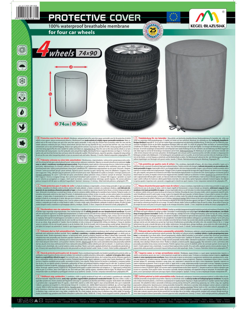Wasserdichte und gleichzeitig dampfdurchlässige Membranabdeckung für Autoräder oder -reifen zum Schutz vor ungünstigen Witterungsbedingungen. Es handelt sich hierbei um eine wetterfeste Abdeckung, die vollständig aus einer hochgradig dampfdurchlässigen Membran hergestellt ist. Sie ist auch bei starkem Regen wasserabweisend und gleichzeitig dampfdurchlässig. Sie leitet die unter der Abdeckung angesammelte Feuchtigkeit und die von den Reifen abgegebenen flüchtigen Stoffe nach außen. Sie schützt die gelagerten Räder und Reifen vor Sonneneinstrahlung (schädlichen UV-Strahlen), übermäßiger Hitze, Regen, Schnee, Frost und Verschmutzungen wie Staub oder Vogelkot. Sie verringert die Reifenalterung und Felgenkorrosion. Sie ist leicht anzubringen und abzunehmen und verfügt über einen starken Kordelzug mit Seil, der verhindert, dass die Abdeckung vom Wind weggerissen wird. Daher eignet sie sich für die Verwendung in Innenräumen und im Freien.