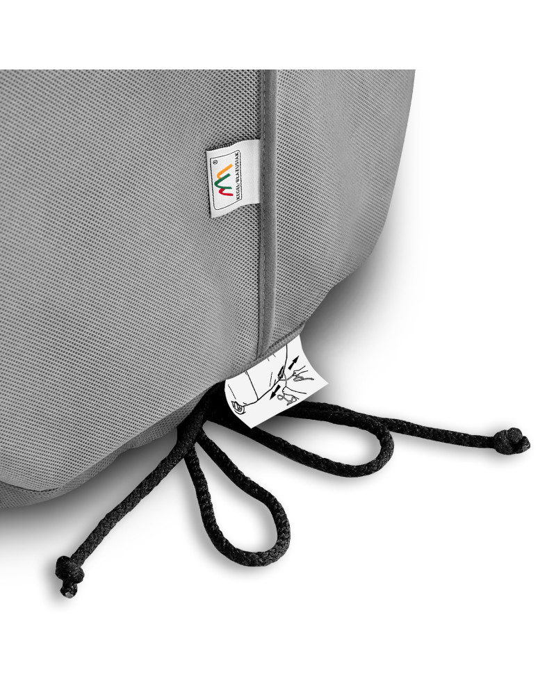 Die Abdeckung ist auf saubere und trockene Autoräder oder-reifen mit der schwarzen Seite nach innen aufzuziehen. Die Kordelzugseile sind zu kreuzen und fest zusammenzuziehen; die Kräfte sind dabei in entgegengesetzte Richtungen zu lenken (siehe Abbildung Nr. 2). Die Kordelzugseile sind zuzubinden und es ist zu prüfen, ob sich der Knoten nach dem Ziehen des Kordelzugs nicht löst. Löst sich der Knoten, so ist der Vorgang zu wiederholen und die Bindemethode zu ändern. Die Abdeckung darf während des Rad- oder Reifentransports auf offenen äußeren Gepäckträgern von Fahrzeugen nicht genutzt werden.