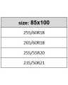 255/60R18, 265/60R18, 255/55R20, 235/50R21.