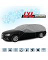 Schutzhülle für den Ganzjahresgebrauch. Im Winter schützt die Schutzhülle die Scheiben und Spiegel eines draußen geparkten Wagens vor Frost und Schnee. Sie deckt die Klinken und Wagenschlösser ab und schützt diese vor dem Gefrieren. Außerdem schützt die Schutzhülle die Scheiben und das Wagendach das ganze Jahr über vor Baumsäften, Vogelexkrementen und Staubablagerungen. Die Schutzhülle ist schwer wasserdurchlässig und schwer dampfdurchlässig.