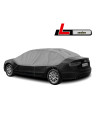 Die Oberseite der Abdeckung besteht aus bis zu 4 Lagen Material, das dick, stark und haltbar ist. Es wird nicht nass, während es die Feuchtigkeit von der Unterseite der Abdeckung ableitet. Das glatte SPUNBOND auf der Innenseite verursacht keine Kratzer am Fahrzeug.