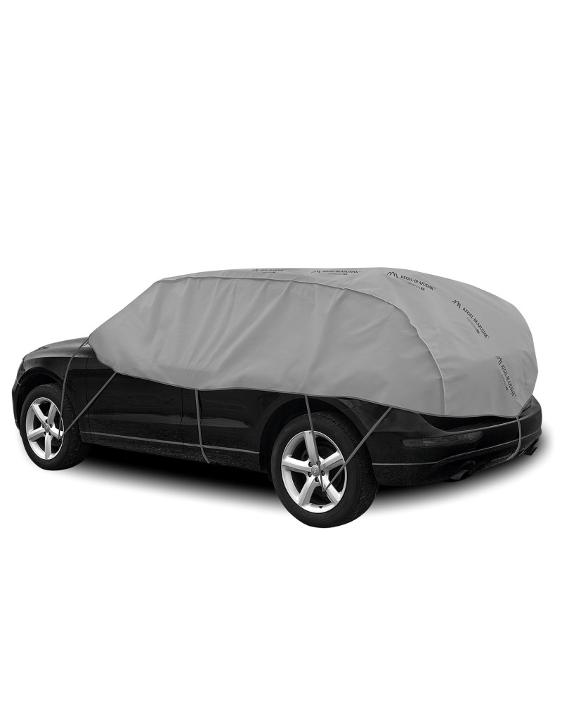 Die Oberseite der Abdeckung besteht aus bis zu 4 Lagen Material, das dick, stark und haltbar ist. Es wird nicht nass, während es die Feuchtigkeit von der Unterseite der Abdeckung ableitet. Das glatte SPUNBOND auf der Innenseite verursacht keine Kratzer am Fahrzeug.