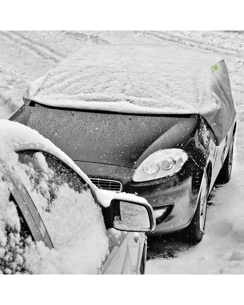 Schutzhülle für den Ganzjahresgebrauch. Im Winter schützt die Schutzhülle die Scheiben und Spiegel eines draußen geparkten Wagens vor Frost und Schnee. Sie deckt die Klinken und Wagenschlösser ab und schützt diese vor dem Gefrieren. Außerdem schützt die Schutzhülle die Scheiben und das Wagendach das ganze Jahr über vor Baumsäften, Vogelexkrementen und Staubablagerungen. Die Schutzhülle ist schwer wasserdurchlässig und schwer dampfdurchlässig.