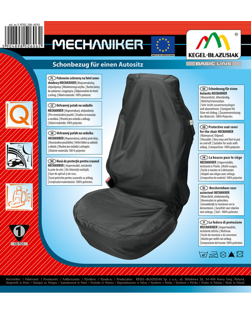 Der MECHANIKER-Schutzbezug ist ein Vordersitzbezug für Automechaniker und Personen, die in schmutziger Arbeitskleidung fahren. Der Bezug ist aus hochwertigem, wasserabweisendem Orthalion gefertigt, was ihn haltbarer und waschbar macht..