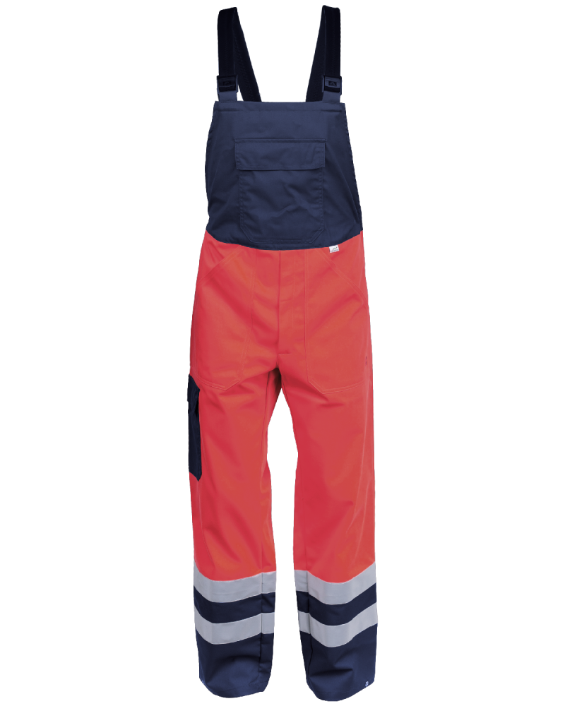 Warnschutz Latzhose 6240 (Hi-Vis Rot/Dunkelblau)
