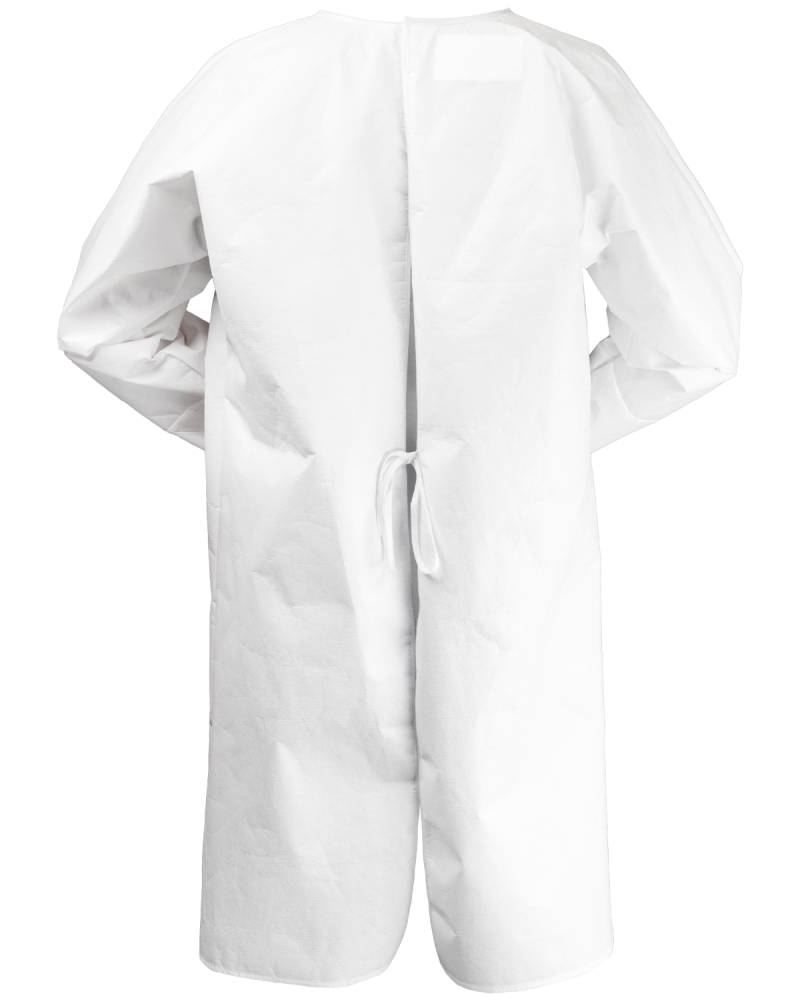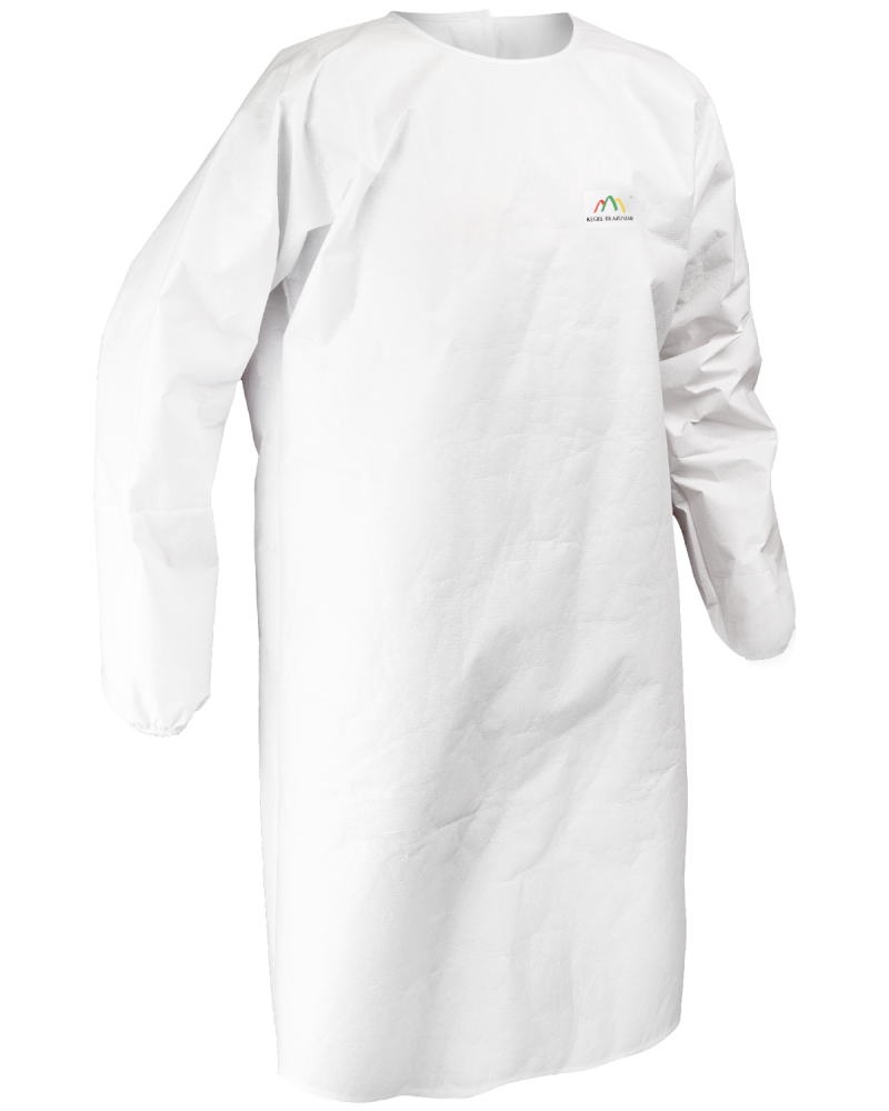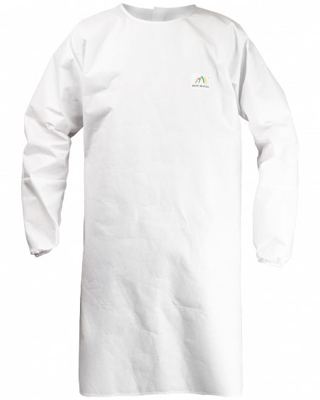 Der aus Vlies und einer Polypropylenmembran gefertigte Schürze bedeckt den Träger, um Spritzer und Verschmutzungen zu vermeiden. Die umfassende Struktur und die Anwendung wasserfesten und dampfdurchlässigen Materials sorgen für Sicherheit und große Bewegungsfreiheit. Das Ganze wird durch einen Klettverschluss, Schnürung und Gummibänder in den Ärmeln ergänzt.