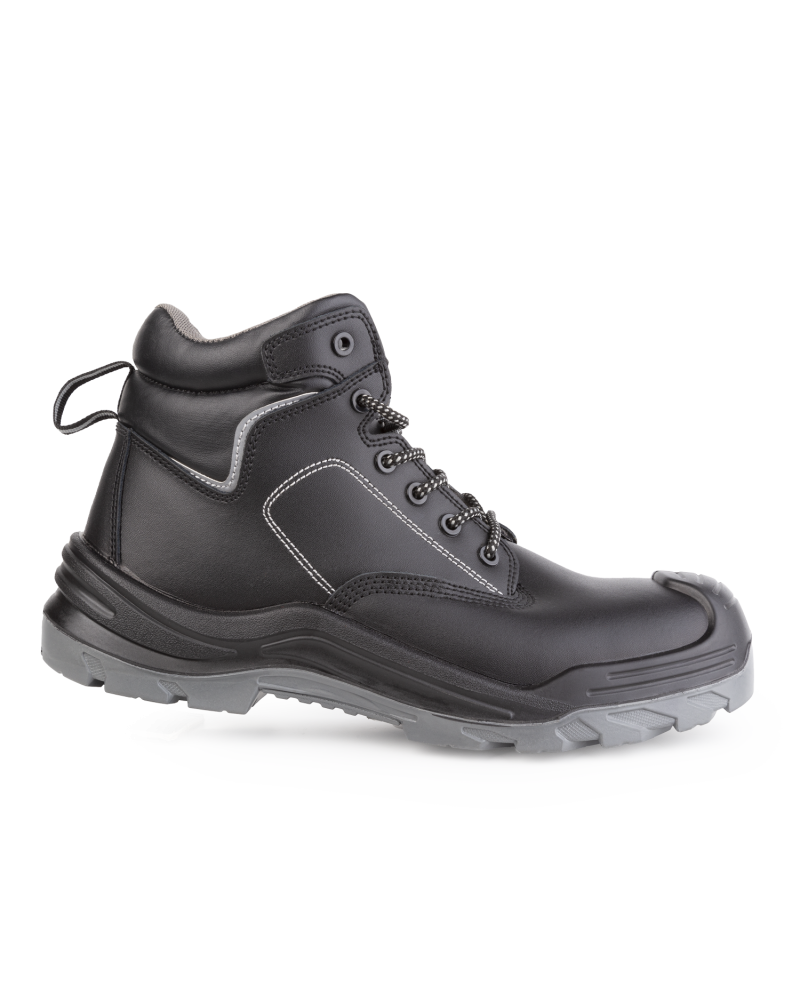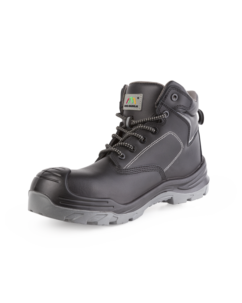 Zehenschutzkappe, Sohle widerstandsfähig gegen Kraftstoffe, integrierter Absatz, antistatische Eigenschaften, Energieabsorption im Fersenbereich, rutschhemmende Eigenschaften, erhöhter Widerstand gegen Wasseraufnahme, Durchstichfestigkeit von unten