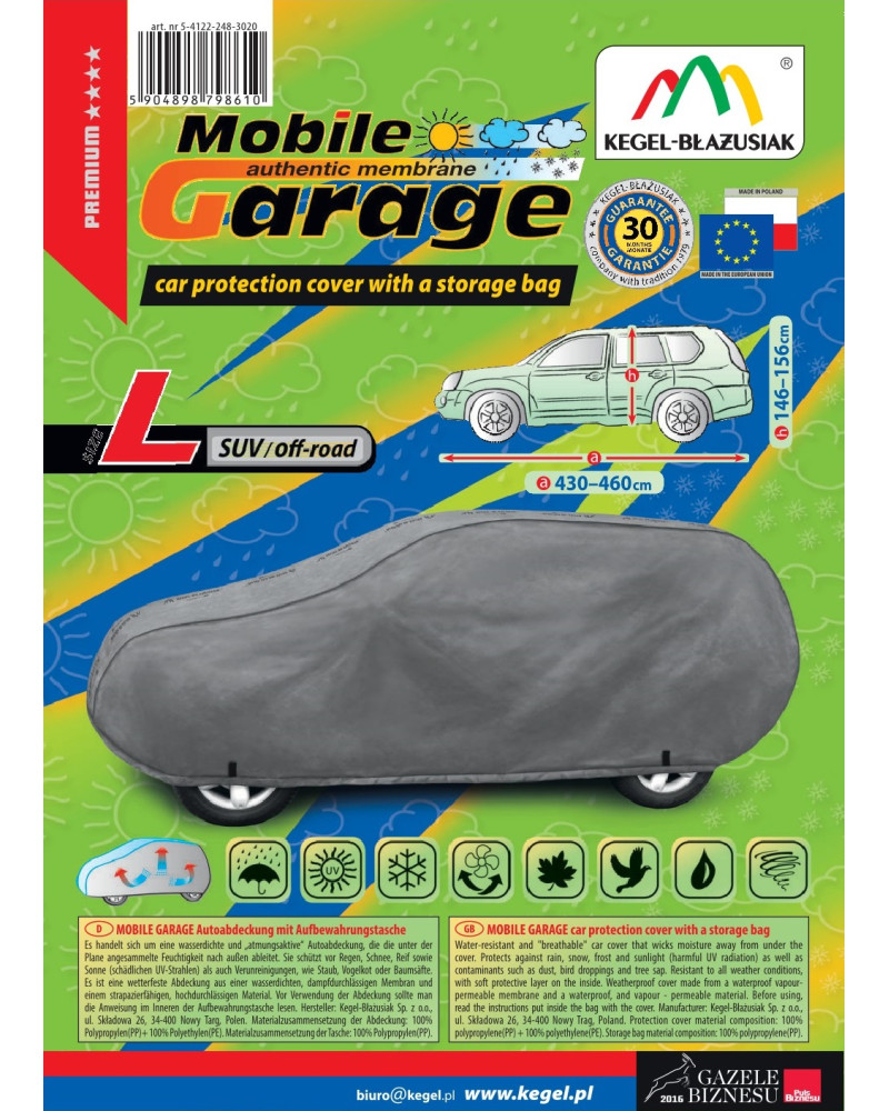• Passt für Fahrzeuge mit den folgenden Abmessungen: Länge 430-460 cm, Maximaler Umfang 1216 cm