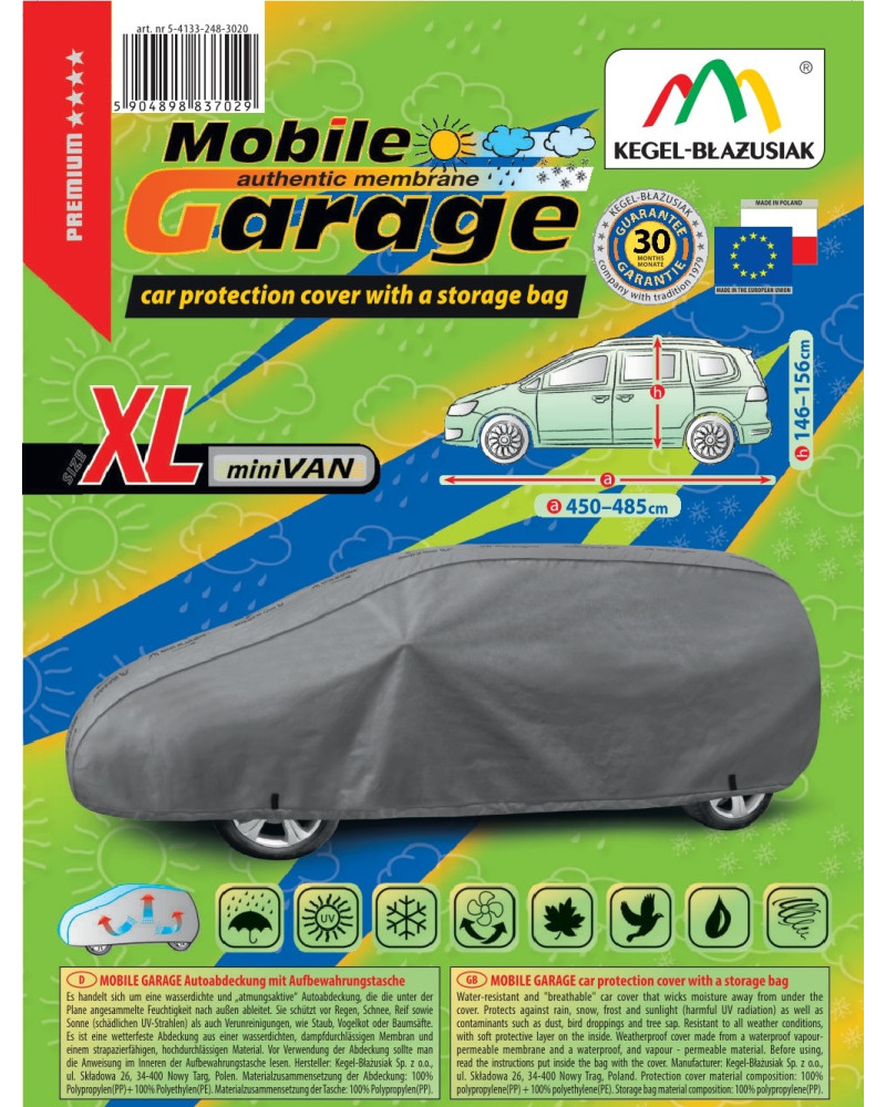 Wasserdichter Schonbezug für das ganze Kraftfahrzeug, der die Feuchtigkeit unter dem Schonbezug abführt. Er schützt das Kraftfahrzeug ganzjährig vor schädlichen Umwelteinflüssen. Der Schonbezug ist für die Fahrzeugmodelle geeignet, die in der oben genannten Tabelle aufgeführt wurden. Er ist leicht aufzubringen und abzunehmen. Dank einer speziellen Struktur und Anfertigung aus dreischichtiger wasserdichter dampfdurchlässiger Membran und schwer wasserdurchlässigem dampfdurchlässigem Material ist der Schonbezug im Regen fast vollständig dicht, und führt zugleich bei positiver Umgebungstemperatur die unter dem Schonbezug angesammelte Feuchtigkeit nach außen ab.