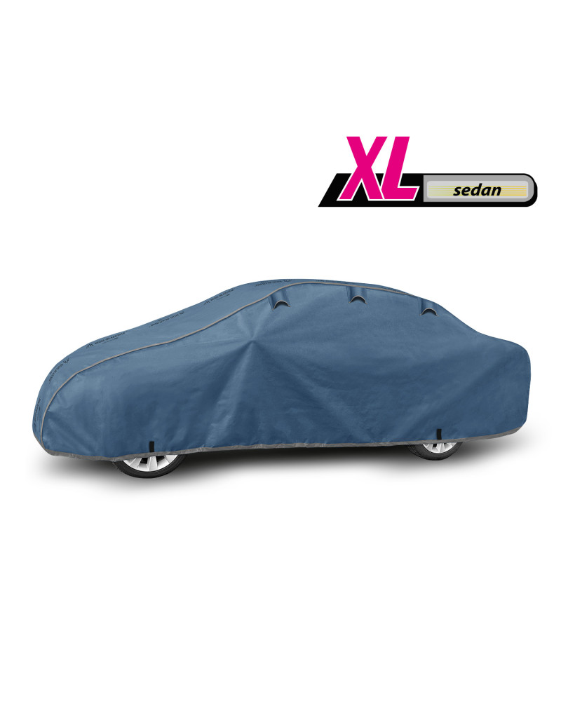 Ganzjährige Membranschutzplane für das Auto mit weichem Innenfutter und witterungsbeständiger Oberfläche. Vollständig aus vierschichtigem Material mit wasserabweisender, dampfdurchlässiger Membran gefertigt. Dadurch ist die Plane komplett wasserdicht, leitet aber den Wasserdampf von innen ab. Ein mit der Perfect Garage abgedeckter PKW bleibt bei Regen trocken, wobei der Wasserdampf durch die Membran verdampft und das Fahrzeug so gegen Korrosion geschützt wird. Darüber hinaus schützt die Stoffgarage gegen Rostflecken, Ausbleichen und Glanzverlust von Lack und Chromteilen. Schützt zudem gegen Regen (auch sauren Regen), Sonne (UV-Strahlung), Staub, Vogelausscheidungen, Blätter, Baumharz, Schnee und Rauhreif. Die weiche Polsterung der Plane verhindert die meisten Kratzer und Lackabschürfungen.