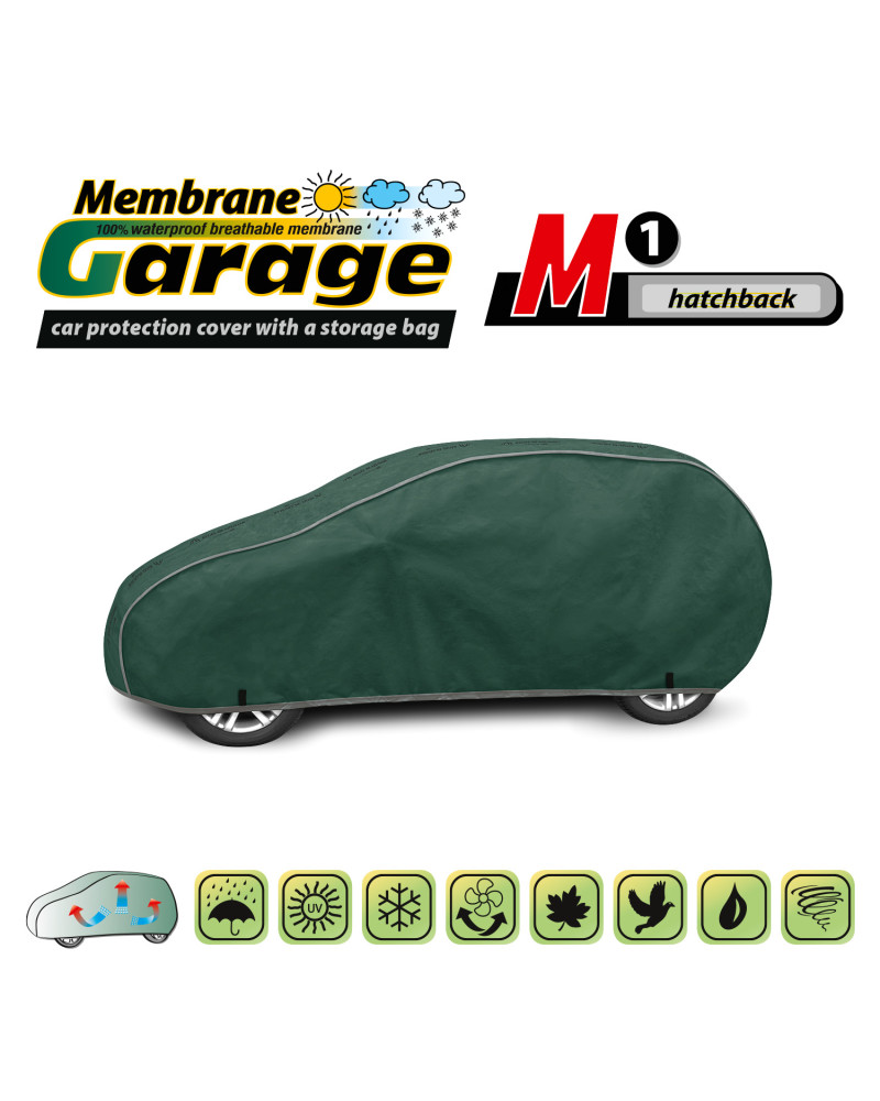 Wasserdichte und gleichzeitig dampfdurchlässige Membranautoabdeckung. Sie ist auch bei starkem Regen wasserdicht und zugleich dampfdurchlässig, so dass die Feuchtigkeit unter der Abdeckung abtransportiert wird. Wetterfeste Abdeckung, die vollständig aus einer hochgradig dampfdurchlässigen Membran besteht. Sie schützt vor Regen, Schnee, Frost und Sonnenlicht (schädlicher UV-Strahlung) sowie Verunreinigungen wie Staub, Vogelkot und Baumsäfte.