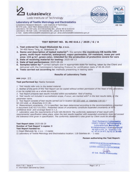 Die Haltbarkeit von Fahrzeugabdeckungen-Planen hängt von deren Beständigkeit gegen Sonneneinstrahlung (UV-Strahlung), hohe Temperaturen, Regen, Frost, Schnee und natürlichen Schmutz ab. Unsere Spezialisten haben auf der Grundlage eigener Langzeit-Umwelttests und der Prüfnorm PN-EN ISO 4892-3 wirksame Methoden zur Prüfung der Widerstandsfähigkeit von Materialien gegen äußere Bedingungen entwickelt. Jede Lieferung von Materialien, aus denen Fahrzeugabdeckungen-Planen von Kegel-Błażusiak hergestellt werden, wird gründlich mittels eines US-amerikanischen UVTest® Fluoreszenz/UV-Geräts getestet. Dank Materialqualitätskontrolle und Langzeit-Umwelttests garantieren wir unseren Kunden auch bei intensiver Nutzung eine mehrjährige Haltbarkeit unserer Fahrzeugabdeckungen-Planen.