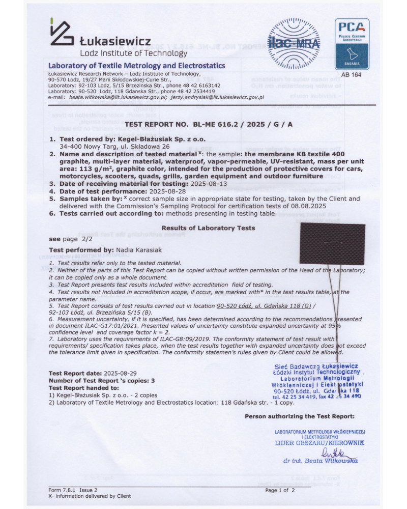Gute Fahrzeugabdeckungen-Planen sollten das Auto nicht nur vor Niederschlägen, Verschmutzung und Sonnenstrahlen schützen, sondern auch sicher sein. Dies zeichnet gerade die Fahrzeugabdeckungen-Planen von Kegel-Błażusiak aus. Unsere Spezialisten führen Langzeittests unserer Fahrzeugabdeckungen-Planen durch. Dabei testet man die Wirksamkeit des Schutzes der Abdeckung-Plane vor Witterungsbedingungen sowie deren Wasserbeständigkeit, die Wasserdampfableitung unter der Abdeckung, die Sicherheit der Abdeckung für Fahrzeuglack und die Wirksamkeit der Befestigung der Abdeckung am Fahrzeug unter normalen und extremen Wetterbedingungen. Die Firma Kegel Błażusiak stellt nur die Produkte her, deren Langzeittests positiv ausgefallen sind.