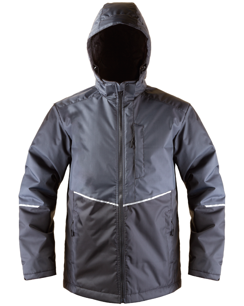 V-Work Winterjacke mit Kapuze, modern und praktisch geschnitten. Wasserdichte Arbeitsjacke, die vor Kälte, Wind und Wasser schützt, perfekt für die Arbeit oder für den Herbst und Winter. Eine Funktionsjacke (Multifunktionstaschen), die bei schwierigen Wetterbedingungen für Komfort sorgt (isoliert, verstellbar, verlängerter Rücken) und ein Gefühl von zusätzlicher Sicherheit und besserer Sichtbarkeit garantiert (reflektierende Elemente).