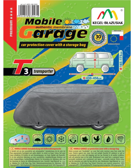 Wasserdichter Schonbezug für das ganze Kraftfahrzeug, der die Feuchtigkeit unter dem Schonbezug abführt. Er schützt das Kraftfahrzeug ganzjährig vor schädlichen Umwelteinflüssen. Der Schonbezug ist für die Fahrzeugmodelle geeignet, die in der oben genannten Tabelle aufgeführt wurden. Er ist leicht aufzubringen und abzunehmen. Dank einer speziellen Struktur und Anfertigung aus dreischichtiger wasserdichter dampfdurchlässiger Membran und schwer wasserdurchlässigem dampfdurchlässigem Material ist der Schonbezug im Regen fast vollständig dicht, und führt zugleich bei positiver Umgebungstemperatur die unter dem Schonbezug angesammelte Feuchtigkeit nach außen ab.