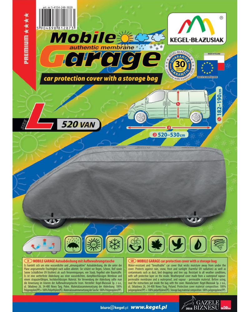 Wasserdichter Schonbezug für das ganze Kraftfahrzeug, der die Feuchtigkeit unter dem Schonbezug abführt. Er schützt das Kraftfahrzeug ganzjährig vor schädlichen Umwelteinflüssen. Der Schonbezug ist für die Fahrzeugmodelle geeignet, die in der oben genannten Tabelle aufgeführt wurden. Er ist leicht aufzubringen und abzunehmen. Dank einer speziellen Struktur und Anfertigung aus dreischichtiger wasserdichter dampfdurchlässiger Membran und schwer wasserdurchlässigem dampfdurchlässigem Material ist der Schonbezug im Regen fast vollständig dicht, und führt zugleich bei positiver Umgebungstemperatur die unter dem Schonbezug angesammelte Feuchtigkeit nach außen ab.